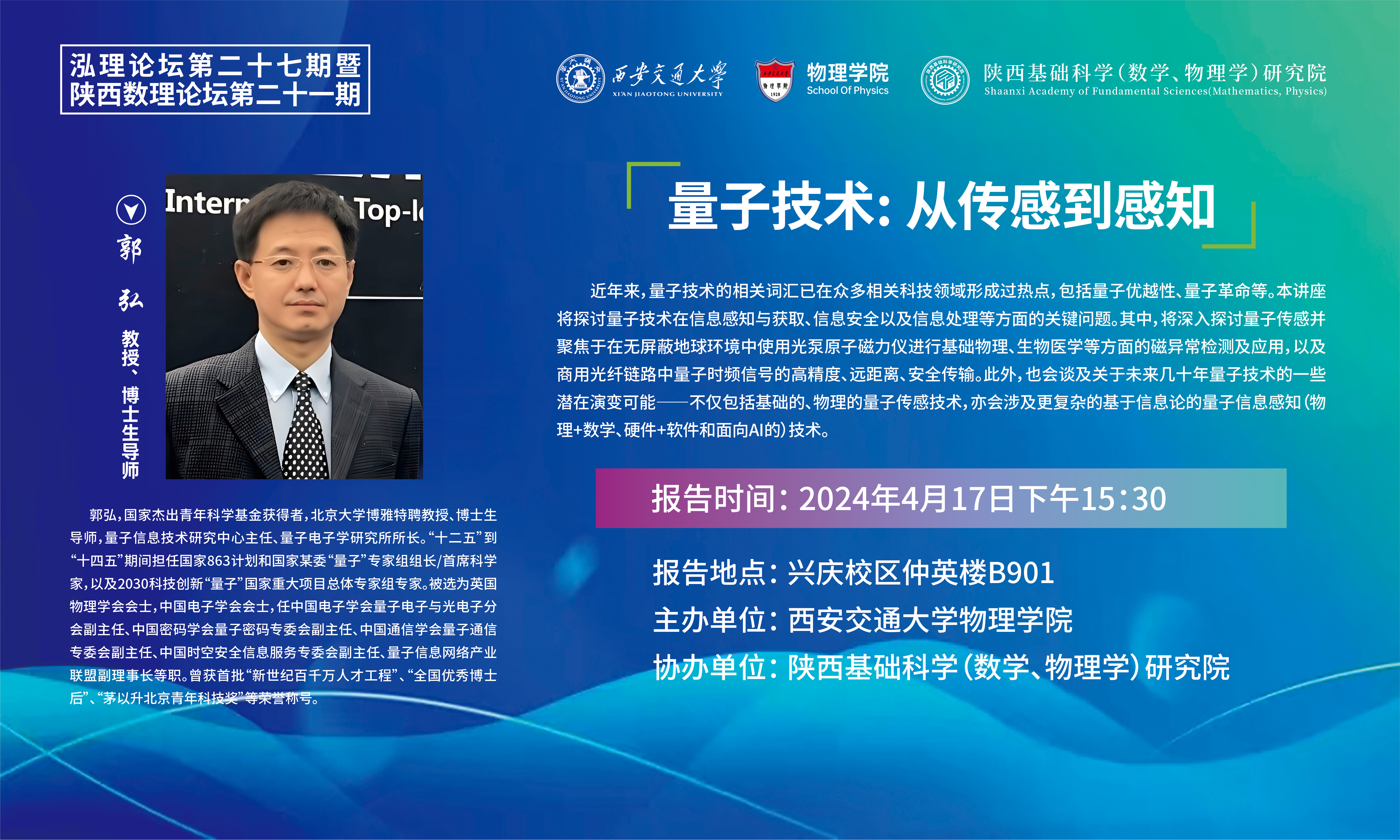 【泓理论坛第二十七期暨陕西数理论坛第二十一期】——量子技术: 从传感到感知