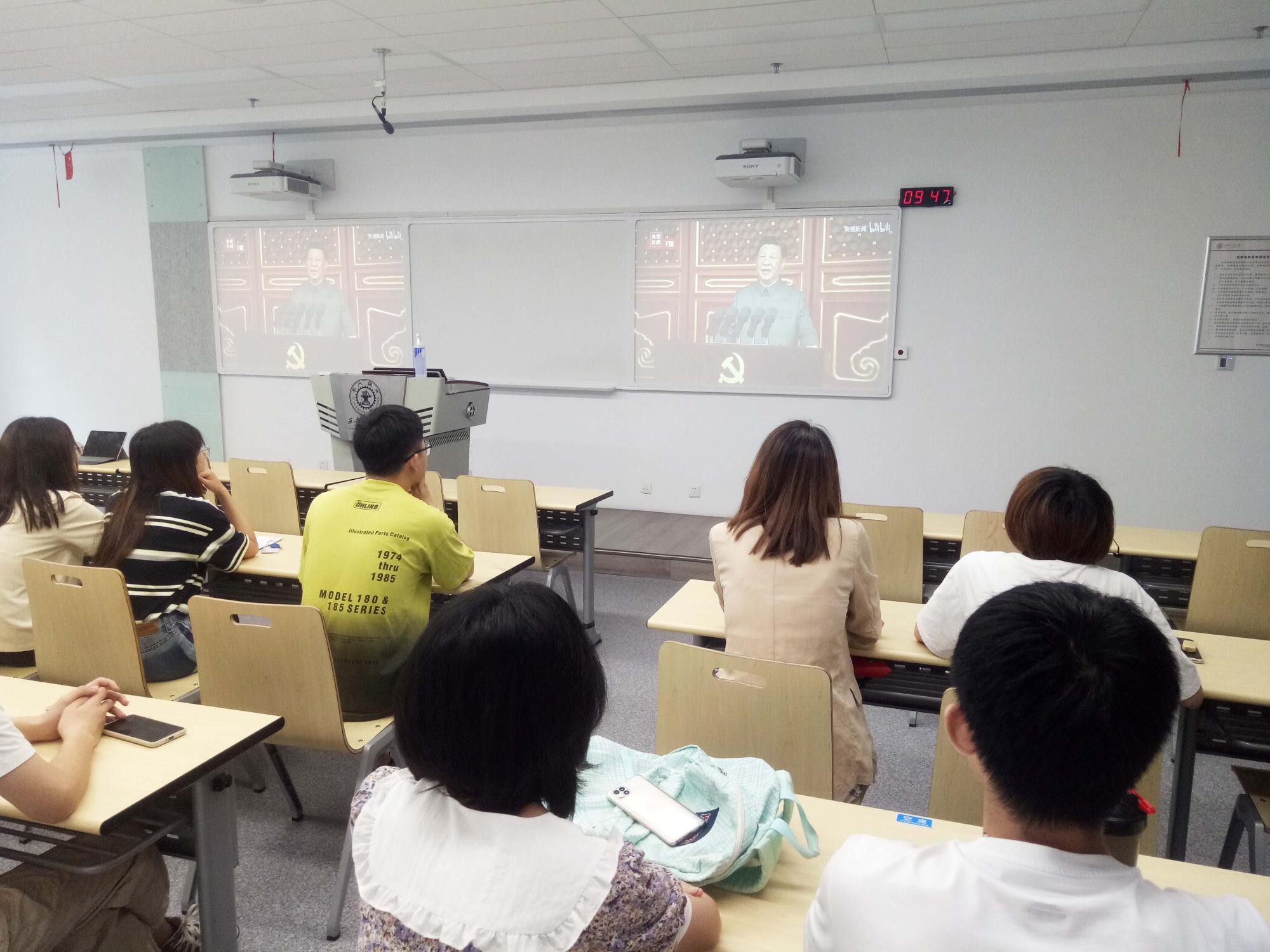 师生认真收看直播,热议习近平总书记在庆祝中国共产党成立100周年大会上的重要讲话。