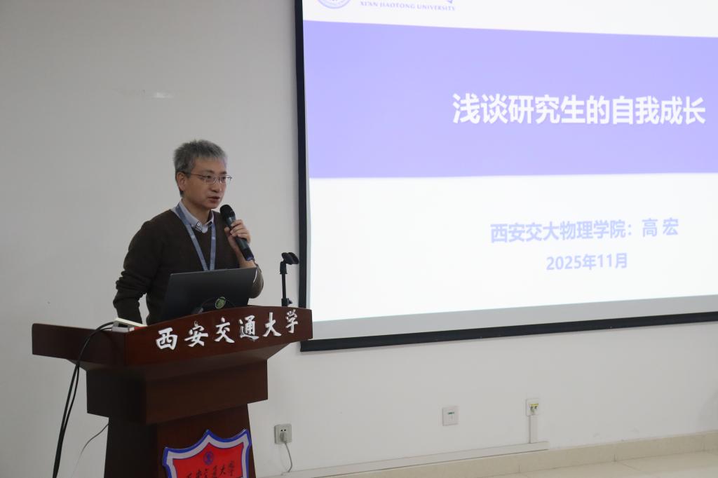 院长高宏教授作“浅谈研究生的自我成长”专题党课,就学习科研、人际沟通、身心发展与学术规范等提出建议,并结合二十届四中全会精神阐述教育、科技、人才在强国建设中的重要作用,勉励学员在科研中锤炼本领、勇担使命,实现与国家发展需求同向同行。