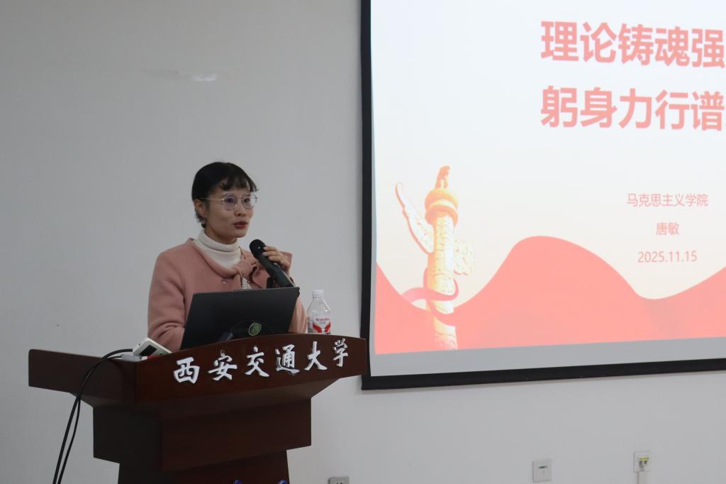 15日上午,马克思主义学院唐敏副教授系统讲解了党的理论根基、历史发展及性质宗旨,强调青年要以党的创新理论武装头脑、坚定方向,以实际行动践行初心使命,进一步提升政治认同与党性修养。