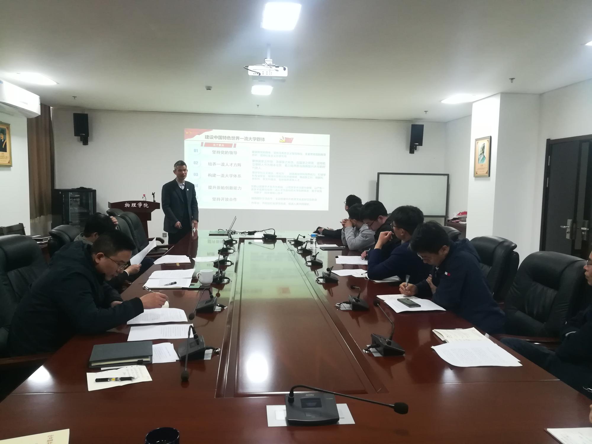 与会同志积极发言研讨。高宏院长认为一流大学建设要立足“立德树人”根本要求,建设高水平师资队伍,提高教师综合素养,坚定理想信念,自觉践行“四有好老师”标准;学院干部更需加强学习,增长本领,注重贯彻落实。副书记张沛提出落实习近平总书记重要讲话精神必须抓好贯彻落实,每位同志从自身做起,用实际行动做好落实工作。赵永涛副院长提出要高度重视基础学科发展,保持基础学科投入,保障人才引进,做好学科发展前瞻性规划。杨志懋副院长认为原创性与学科交叉在一流学科建设中具有重要意义,在学院治理和科研工作中都要从学科交叉的角度,强调创新,切实提升科研创新能力。
