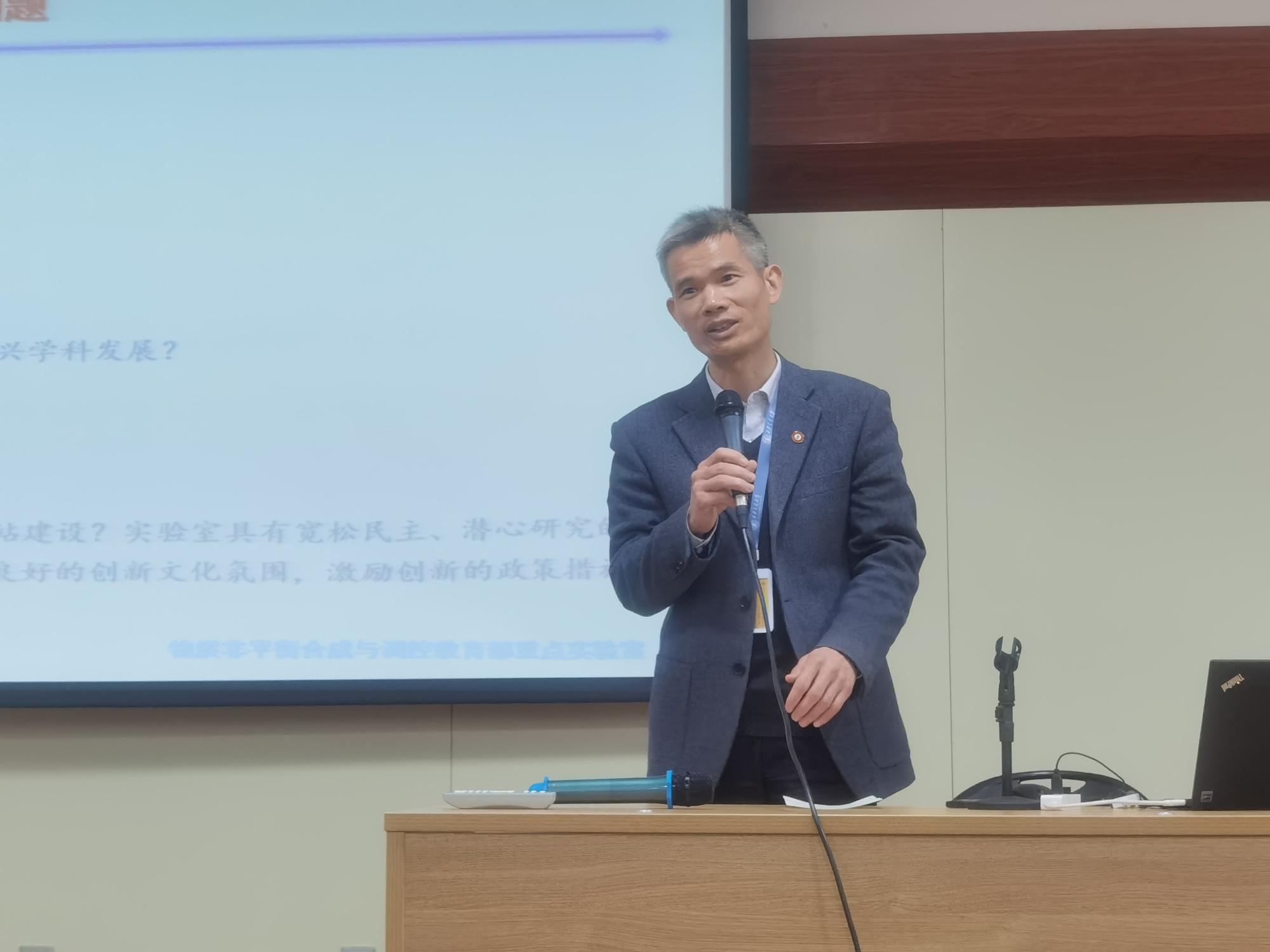 教育部物质非平衡合成与调控重点实验室主任宋晓平介绍了实验室的建设与发展等情况,并对教育部重点实验室评估事宜进行了动员说明。