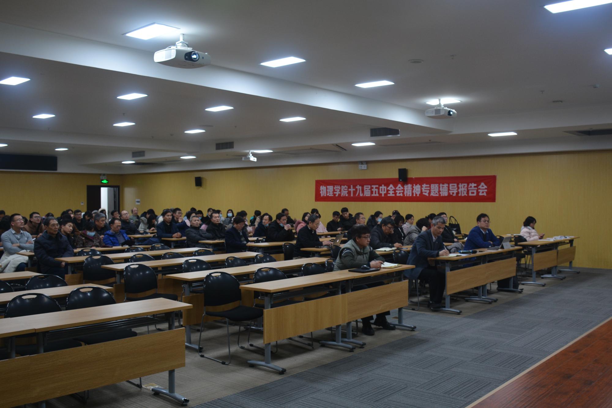 在仲英楼举办十九届五中全会专题辅导报告会,邀请马克思主义学院陆卫明教授做报告,学院全体师生参加学习活动。学院分党委书记杨小渭主持会议。