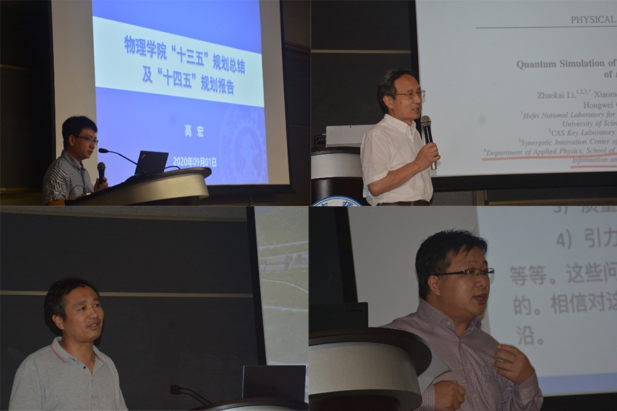 9月1日上午,高宏院长就《 “十三五”工作总结及“十四五”工作计划》做了报告,详细总结十三五各项工作完成情况和十四五学院将在教学、科研、人才培养等方面的工作规划,就目前面临的主要问题,进行深刻阐述。李福利教授、杨生春教授、张盈教授分别分享了光学所、物质所、理论所的发展规划,对学院目前存在的问题和挑战做了详细的阐述,就未来发展提出建设性方案。下午,李蓬勃副院长结合学科评估工作和学院实际,就新一轮学科评估情况做了详细介绍,着重介绍各项工作短板和改进策略。会后,学院党政领导、教授、骨干教师等召开学院发展主题座谈会,就学院目前面临人才引进、科研创新等相关问题进行深入研讨,取得了积极成效。