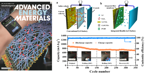 该研究工作以《“三位一体”集成化纤维膜助力柔性和高负载锂硫电池》(Flexible and High-Loading Lithium-Sulfur Batteries Enabled by Integrated Three-in-One Fibrous Membranes)为题,在环境能源领域顶级期刊《先进能源材料》(Advanced Energy Materials, IF=24.88)上发表,并被评为当期“内封面”(Inside Front Cover),四虎影院