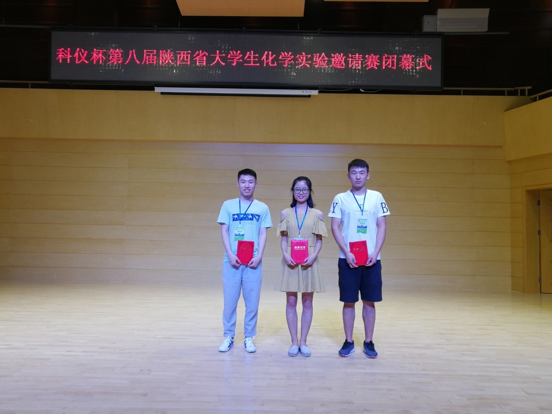 陕西省化学实验邀请赛和陕西省化学实验中心联席会是陕西省化学实验教学的交流盛会,也是我省高等学校化学学科面向本科生进行的最高级别比赛。本次邀请赛共有来自我省各个高校的24支代表队,共75名选手参赛。经过2小时的理论笔试和长达8小时的实验操作,我校三名同学经过激烈的角逐均取得了一等奖的好成绩!