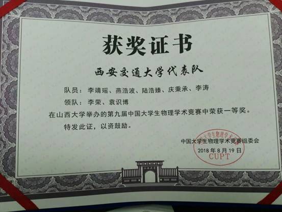 队员:李涛(物理试验班71)庆秉承(物理试验班71)李靖瑶(钱学森班81)燕浩波(物理试验班71)陆浩臻(机类840)