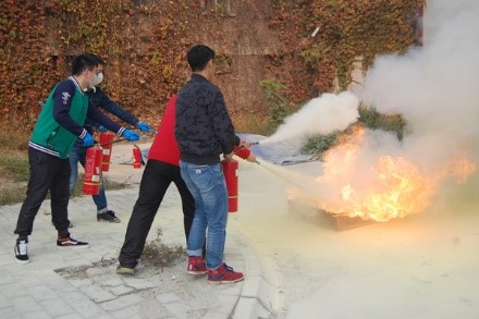 11月15日下午2.30分,在基础学科大楼南侧进行了灭火消防演练,校保卫处消防干事刘豹虎讲解了我校第二十七届“119”消防日的来历,以及消防灭火器的种类、使用场合和使用方法以及在实际使用中对于不同的起火原因应如何应对,最后参加培训的人员按组进行了灭火演练。下午4.30分,在基础学科大楼B102室举行消防知识讲座。院党委书记郑元锁书记做了动员发言,他告诫同学们要掌握灭火知识,防患于未然,尽量避免造成火灾,但在发生火灾时一定要知道如何保护自己。省消防培训中心张治国教员就安全隐患、火灾的特性、消防器材的维护、怎样应对火灾的发生、怎样辨别大楼逃生通道和提高消防技能等方面的问题展开了讲解和互动。他用详实的案例进行了剖析,使学生们在现实中如何应对突发火灾事件、保证人身安全方面,受益匪浅。