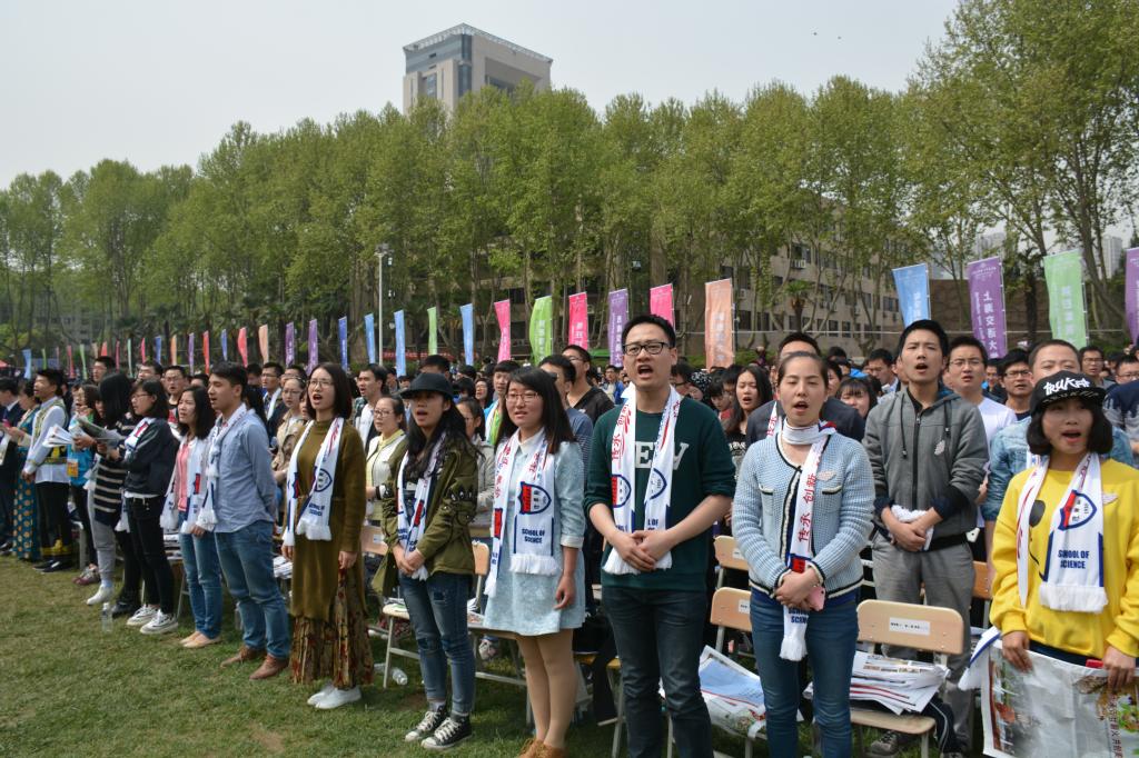 上午8点,理学院代表师生入场就座。大家满怀热情,高喊着“交大你好,生日快乐”、“欢迎校友回家”的口号,充分彰显了理学院学子热力四射的精神风貌和青春活力。张迈曾书记开场讲话,一句“天公作美人争气,交大要前进”点燃了整个会场的激情。大家仔细聆听了王树国校长、师生校友代表及其他嘉宾的讲话,深受鼓舞,深感振奋。临近纪念大会结束,在一片欢乐热烈的气氛中,理学院师生代表挥舞纪念围巾,与校友挥手道别。