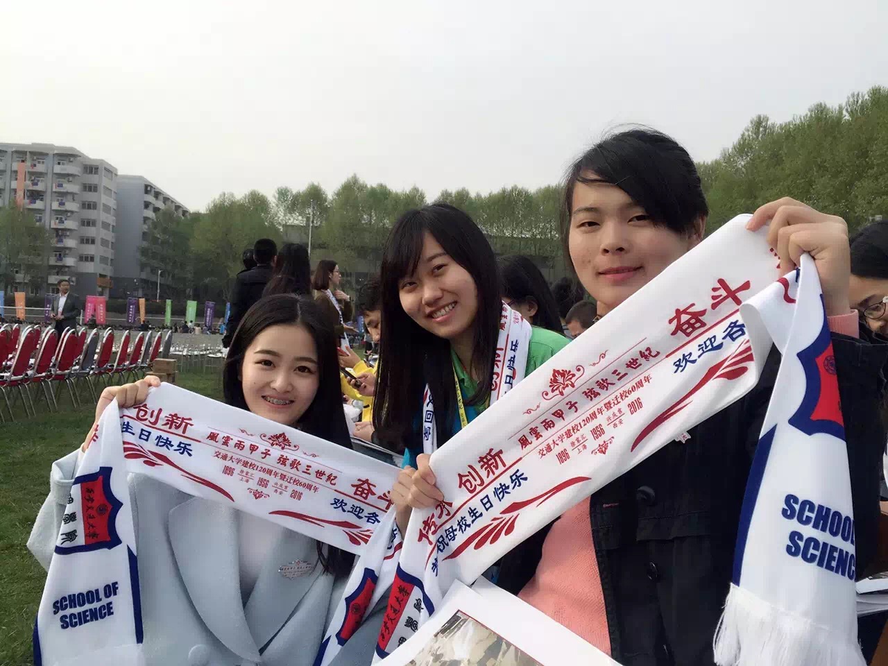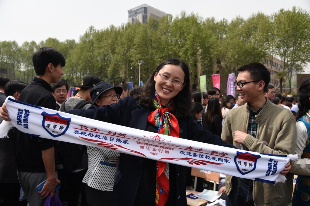 120周年华诞献礼,理学院精心准备了校庆纪念围巾,印有校庆纪念大会主题“传承、创新、奋斗、攀登”,“恭祝母校生日快乐,欢迎各位校友回家”,校庆标志等,寓意 “一带一路”国家重大战略,寓意母校繁荣昌盛,纪念围巾由上海厂家制作,通过在上海的校友接力传递,仅用3天就转到了理学院学生手中,也暗合西迁寓意。同时也代表了理学院广大师生心声,为校庆献礼。