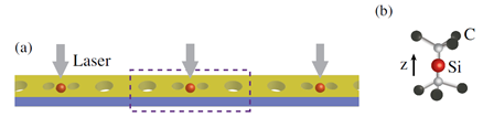 图:(a)一维声光晶体,其中镶嵌有SiV自旋阵列(b)SiV色心自旋的物理结构