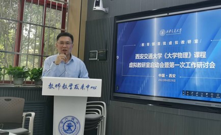常务副校长郑庆华指出,作为教学过程中的重要载体和组织架构,大物虚拟教研室要充分发挥社会主义制度的优越性,为教育发展提供新的动力和活力,要进一步利用互联网、人工智能、大数据等前沿技术,打破各种壁垒,实现新的教育思想、理念、方法和技术,为西部地区、乃至全国大学物理教育提供服务和支撑。王青要求作为西部地区唯一一个虚拟教研室,应担负重任,在西安交大两位物理国家教学名师的带领下,促进全国大学物理教育水平的提升。