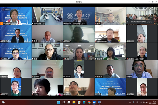 随后召开了大学物理课程虚拟教研室第一次工作研讨会,围绕探索“智能+”新型基层教学组织建设和课程高质量发展主题,对大学物理基层教学组织、课程思政、新形态教材建设、数字化资源建设及应用等进行专题工作研讨。会议由虚拟教研室副主任方爱平主持。教务处处长王秋旺在致辞中指出,在后疫情时代虚拟教研室能够突破地域和空间限制,带动教育教学的进一步发展,贡献西安交大的智慧和力量。国家虚拟教研室建设专家组成员、清华大学于歆杰教授介绍了虚拟教研室的建设理念与行动方案的思考;国家虚拟教研室建设专家组成员、复旦大学教务处处长蒋最敏教授针对虚拟教研室质量监控做了详细的分析;中国矿业大学教务部副部长石礼伟教授介绍了大学物理课程知识图谱构建的探索与实践。北京化工大学邵晓红教授、西安交大张二虎副教授针对课程思政建设、教学模式改革等方面做了示范讲解。最后,参会成员围绕大学物理基层教学组织建设、新形态教材、数字化资源建设及应用、课程思政建设等专题进行了热烈的研讨。