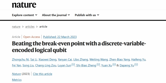 为攻克上述难题,徐源团队利用微波简谐振子或玻色模式系统中的无穷维希尔伯特空间实现量子信息的冗余编码与量子纠错。通过开发高相干性能的量子系统,设计和实现低错误率的错误症状探测方法,以及改进和优化量子纠错技术等实验手段,最终在玻色模式中实现了基于离散变量的二项式编码的逻辑量子比特,并通过实时重复的量子纠错过程,延长了量子信息的存储时间,相关结果首次超过该系统中不纠错情况下的最好值,也就是突破了盈亏平衡点。这也是国际上首次通过主动的重复错误探测和纠错过程实现延长量子信息的存储时间超越盈亏平衡点,具有里程碑式的重要意义。