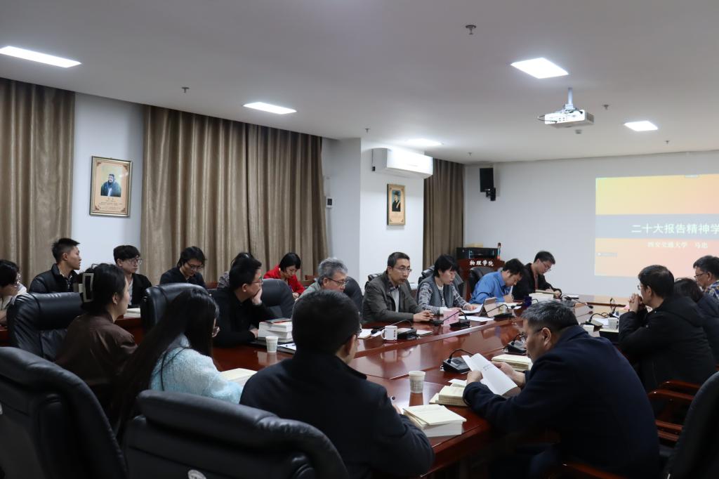 马忠教授作党的二十大报告专题辅导报告,他从总体结构、理论创新、灵魂主线三个方面,结合学校学院发展实际,深刻阐述了党的二十大报告的总体架构、理论创新的丰富内涵和主题主线,深刻解读马克思主义世界观和方法论的重要价值,深刻阐释了习近平新时代中国特色社会主义思想的内涵要义及贯穿其中的立场观点方法的重大理论意义和现实意义,为学院深入开展主题教育提供了理论指导。
