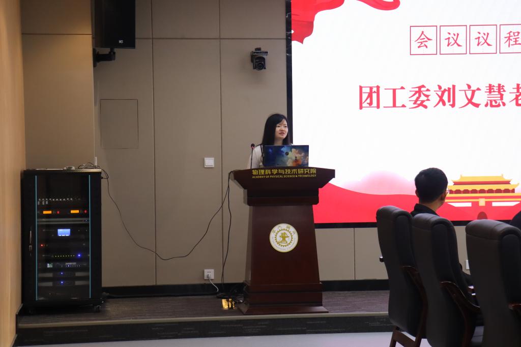 团委书记刘文慧作讲话。刘文慧强调,作为代表每个参与的同学都是至关重要的一份子,大家要认真履行代表权利和义务,积极传达广大同学的问题和建议。也要以身作则在科研中精益求精,在生活上乐于助人,以积极向上的面貌服务同学。刘文慧鼓励同学们可以通过班级和研究生代表大会等多种渠道,反馈科研和生活上的问题,维护自身权益。