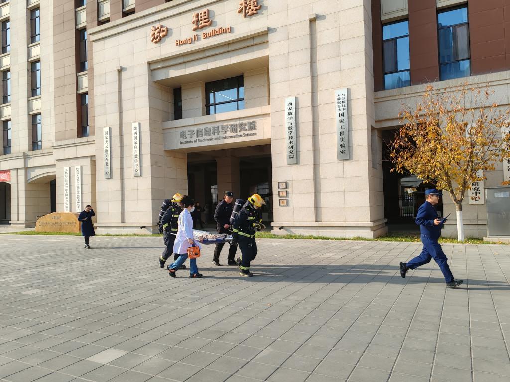 联合电信学部、校医院、保卫处、沣西大队创新港消防站等单位在创新港泓理楼开展消防安全演练,四虎影院