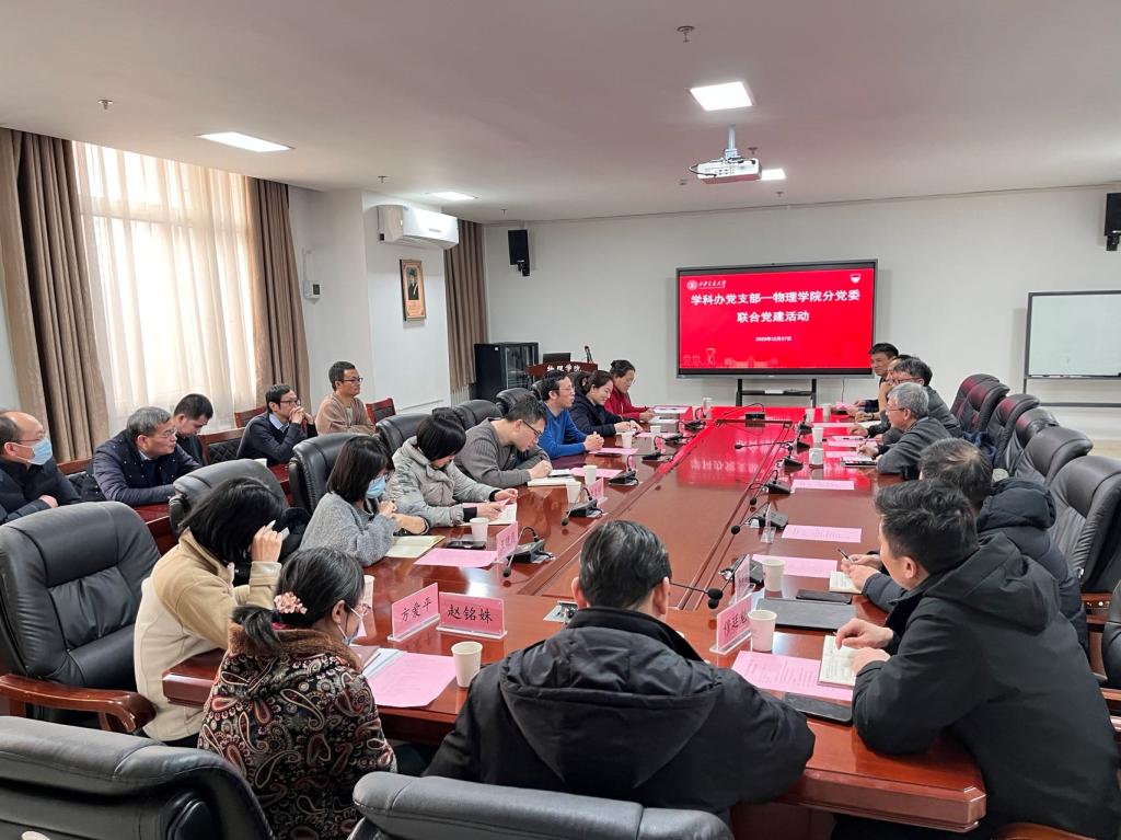 分党委联合开展组织生活,集体学习习近平总书记在中共中央举行纪念毛泽东同志诞辰130周年座谈会上的重要讲话精神,探讨物理学科评估、建设等工作,共同推动党建引领学科高质量发展。学科办主任陈雪峰,学科办副主任、党支部书记李英英,四虎影院