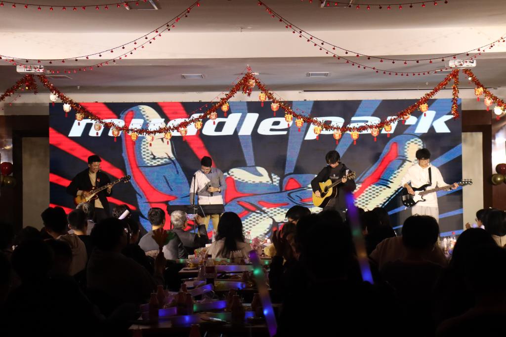 精彩的开场舞《UNFORGIVEN》拉开了迎新晚会的帷幕燃爆全场,接下来是学院党政领导朗诵《2023辞旧迎新》,回首2023年学院取得的各项成果,迎接充满无限可能的2024年。励志书院夏笑武老师演唱歌曲《七里香》极具感染力,充满浓郁的东方韵味给观众带来共鸣。由学院院办老师、研究生代表带来的诗朗诵《我们的这一年》,以诙谐幽默的方式引得大家多次大笑。白一鸣、董立桢、杨奕姝三位同学边唱边合奏《背对背拥抱》非常唯美。四首单曲《我会等》、《不要说话》、《Waving Through a Window》、《梦一场》歌曲优美动听。