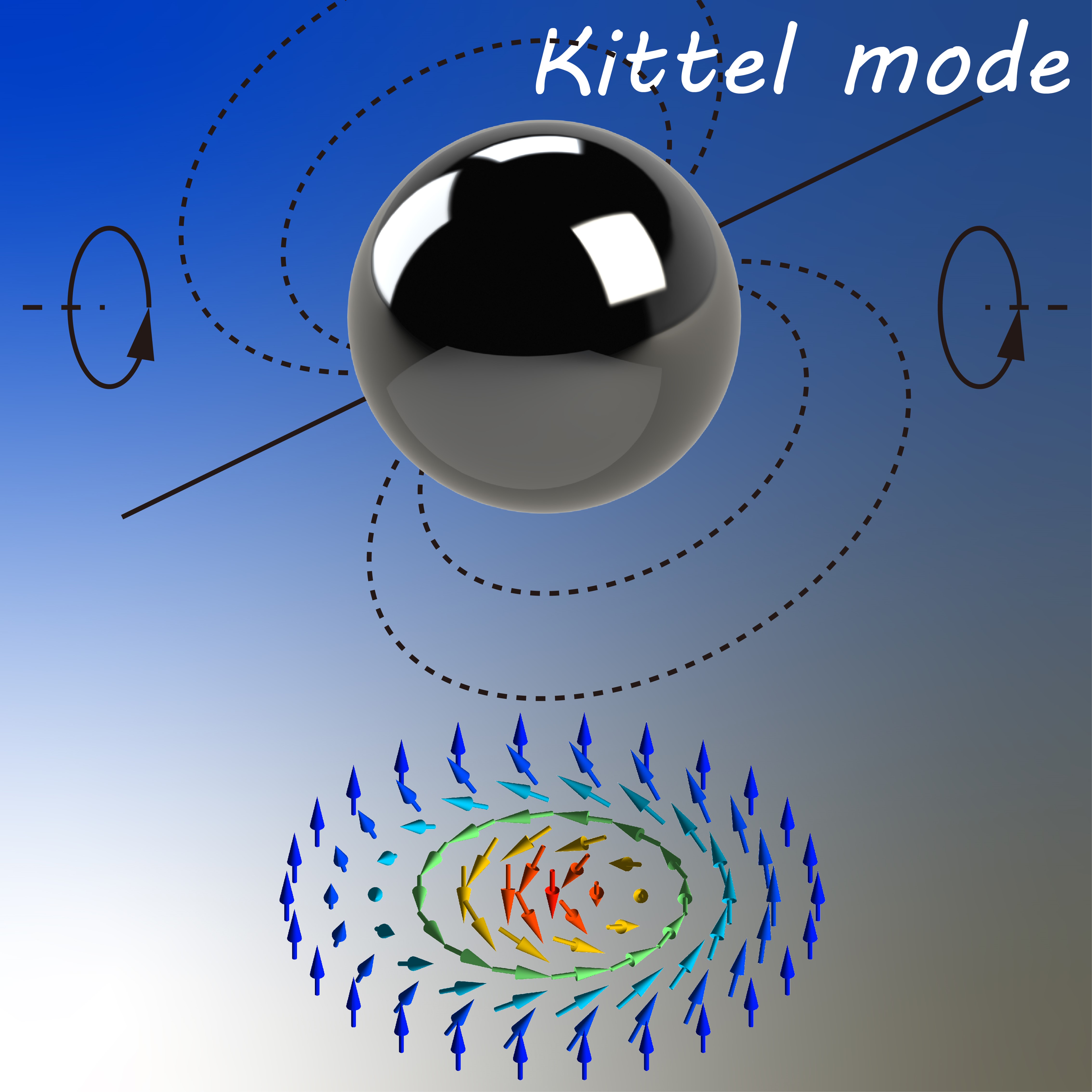 李蓬勃教授课题组与合作者通过开展磁振子和斯格明子相互作用的全量子理论研究,提出了一种全新的理论模型——利用磁偶极相互作用,可以实现磁振子和斯格明子二能级体系之间的强耦合。当量子化的自旋波(磁振子)被激发时,斯格明子量子比特感受到磁振子的磁场会发生变化,从而能够实现由JC模型描述的磁振子和斯格明子量子比特在单量子水平上的直接相干耦合。为了控制和增强磁振子和斯格明子量子比特的相干耦合,可以利用磁振子克尔效应,通过参量驱动增大磁振子的零点涨落,从而实现指数型的相互作用增强。此外,磁振子-斯格明子混合量子系统对支持磁子模式的磁性材料的几何形状没有具体限制,因此,球形、薄膜或块状磁性材料均可用于构建该混合量子系统。