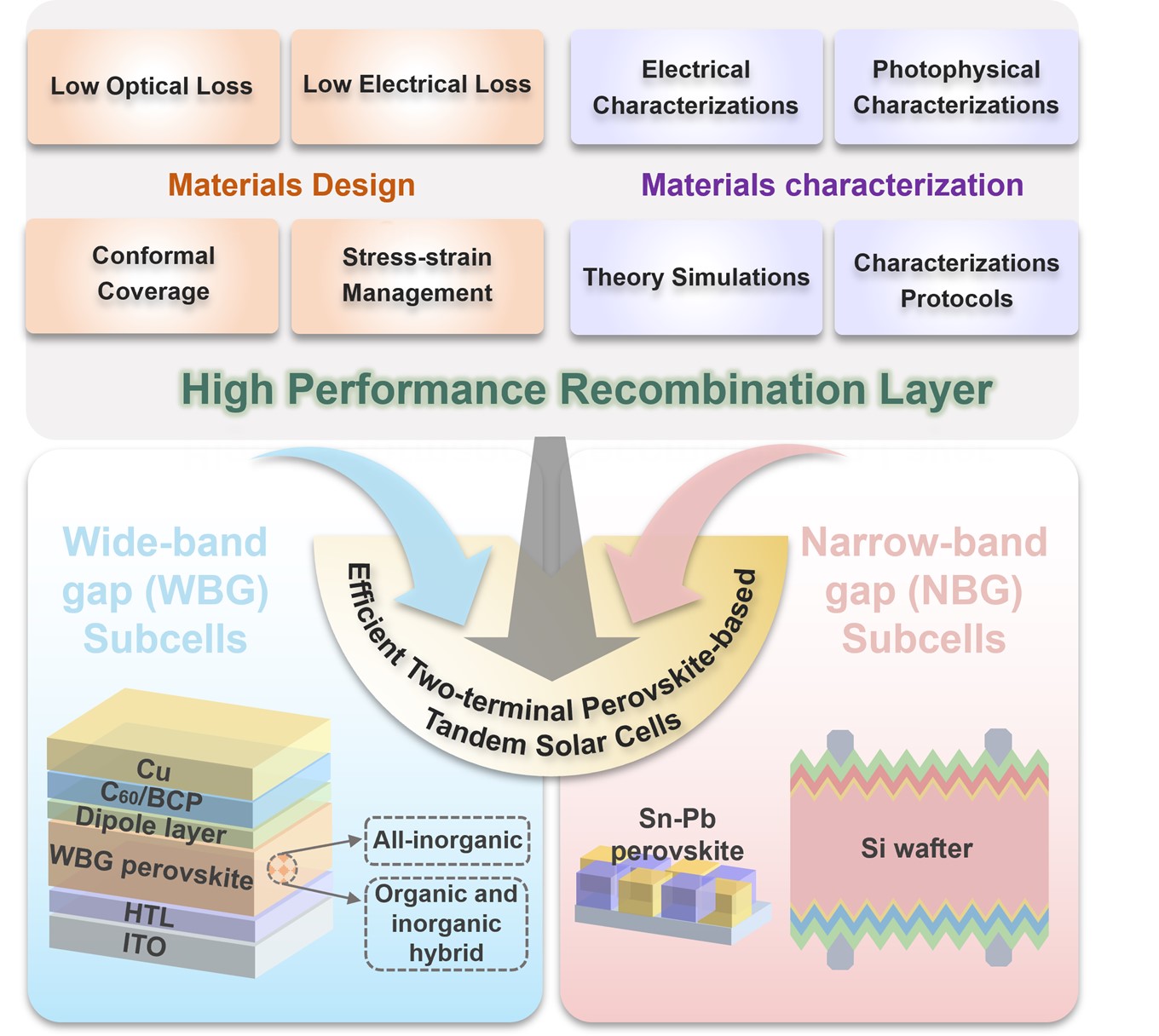 高效两端钙钛矿基叠层太阳能电池的复合层设计示意图