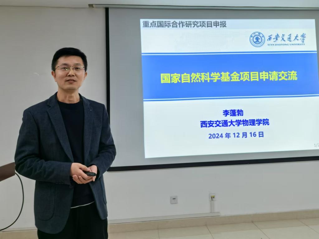 李蓬勃教授从申请基金的三要素入手,分享了重点国际合作项目的申请经验,建议与会教师在未来科研活动中多向成功者学习经验、多做有影响力的工作、多于同行交流、深耕一个领域并系统深入开展研究。他表示基础研究正当时,作为交大教师应担负起“西迁精神”的使命,争创世界一流、服务国家战略。