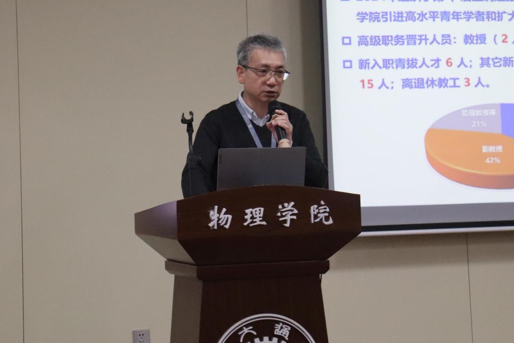 在队伍建设、教学与人才培养、科学研究等方面都取得了喜人成绩。高宏重点汇报队伍建设、科研与外事、学科发展现况,在学校的大力支持下,学院在人才队伍建设方面突破明显,物理学科在教学成果、学术成果、科研到款等方面都取得显著成效。2024年学院要明确重点发展方向,明确队伍建设、人才培养、科学研究、教学评估、机构改革等工作目标,要瞄准国家重大需求不断推进内涵式高质量发展。