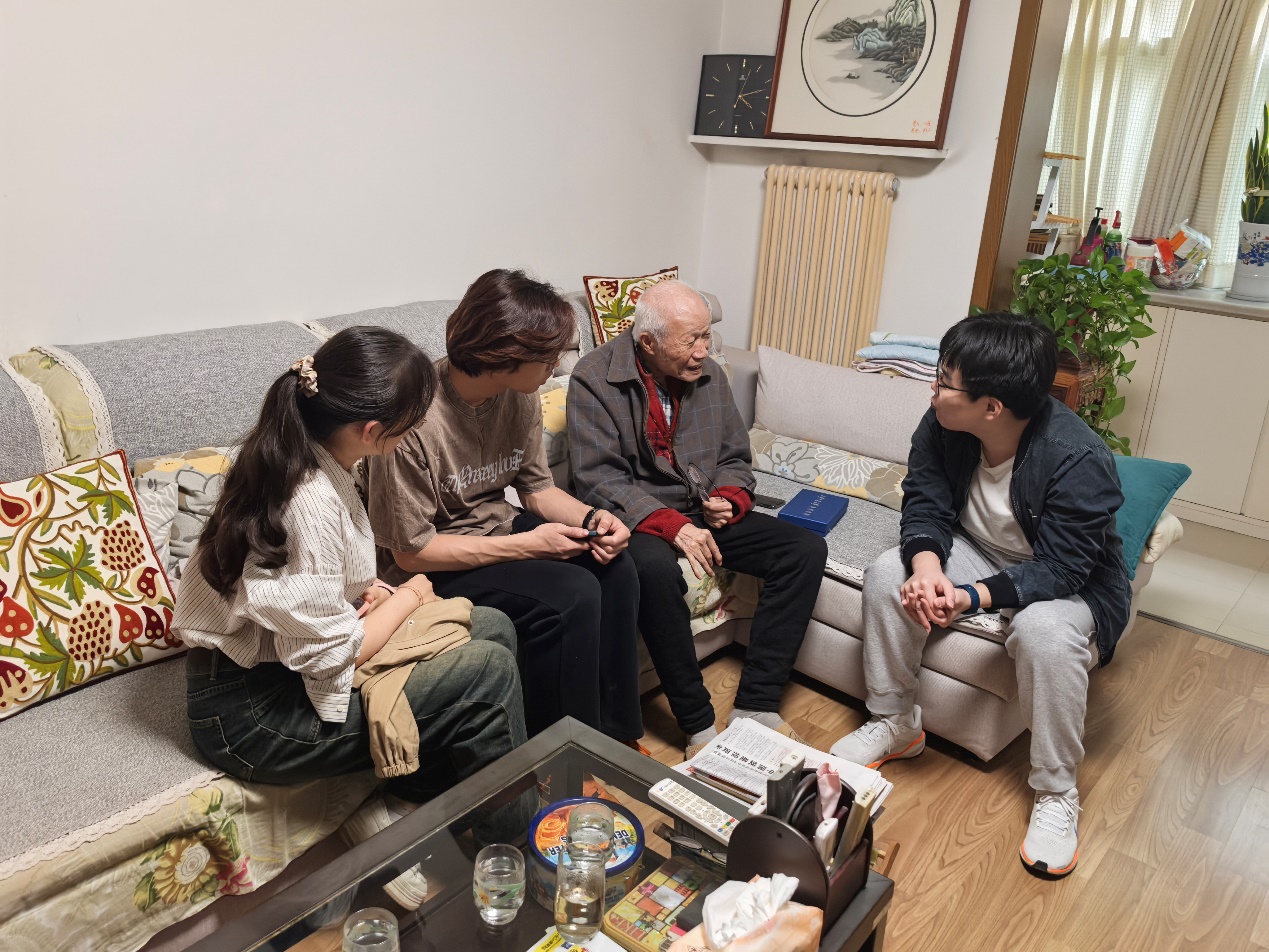 励志书院物理师生联合党支部马宇航等4名同学前往退休老教授吴寿锽家中探望,代表学院和党支部为老教授送去关怀与祝福,聆听奋斗故事,感悟西迁精神的时代力量。