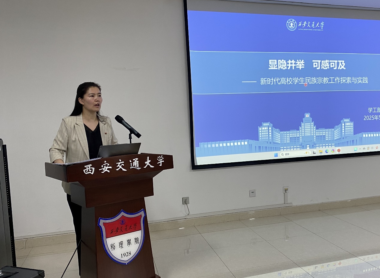 会议特邀励志书院院务副主任、“同心圆”民族团结工作主持人库来西·依布拉音作题为《显隐并举 可感可及——新时代高校学生民族宗教工作探索与实践》的专题报告。报告立足新时代高校工作实际,深入解读了民族宗教工作的政策法规,并结合典型案例,剖析了当前高校民族宗教工作的重点与难点。库来西老师强调,全体教师应坚持立德树人根本任务,一方面加强思想引领,帮助学生树立正确的世界观、人生观和价值观,铸牢中华民族共同体意识;另一方面要增强风险防范能力,坚决抵御境外势力利用宗教进行渗透,切实维护校园安全稳定。