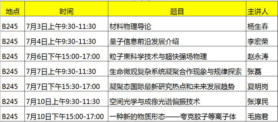 2015级选修课《物理前沿研究进展》的时间安排