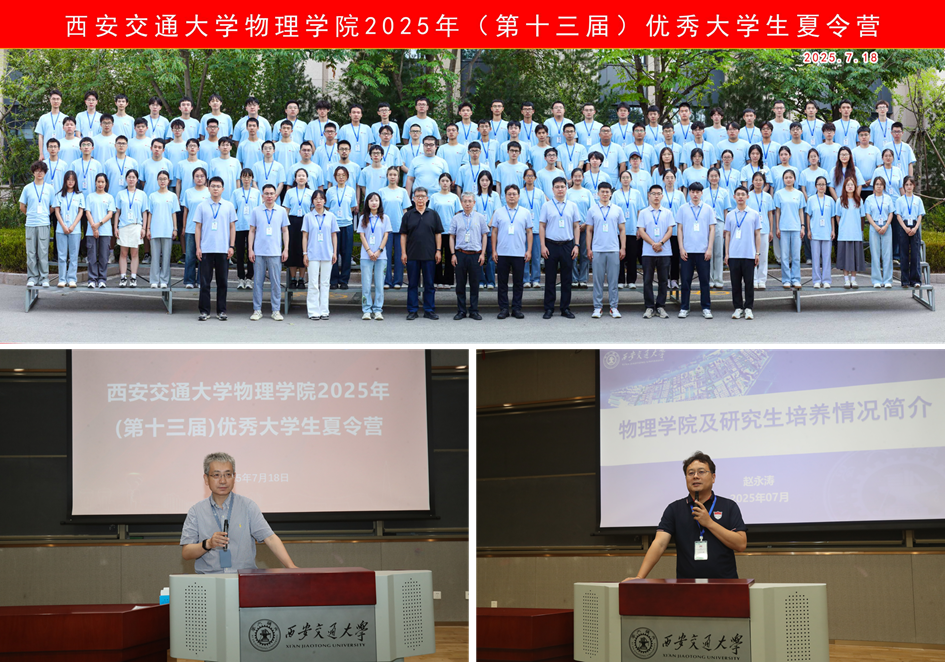 悠久的历史,学科建设情况及人才培养举措,以“修一等品行、求一等学问、创一等事业”的培养主线,为同学们的科研生涯描摹了清晰蓝图。开营仪式后,全体营员与领导、老师合影留念,留下青春与交大物理的美好瞬间。