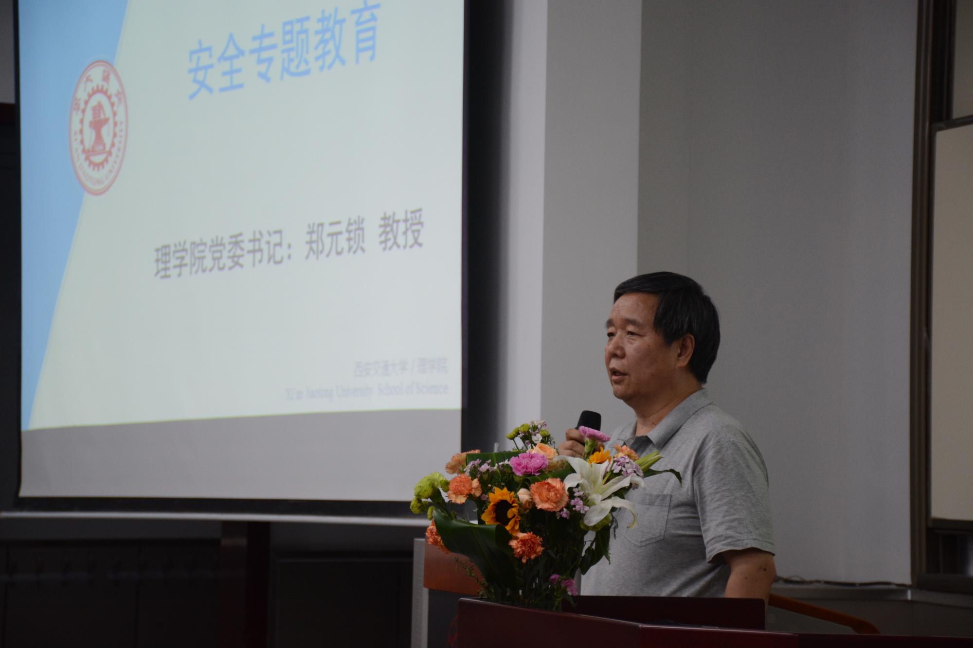 党委书记郑元锁教授进行了安全专题教育,从人身财产安全和诚信安全两方面进行了深入解读,指出安全问题,重于泰山,不仅要不断提高人身财产安全意识,消除安全隐患,而且要重视诚信安全。结合已经发生的惨痛案例,特别强调了宿舍安全和实验室安全问题,要求大家进出实验室一定要严格检查,防患于未然。