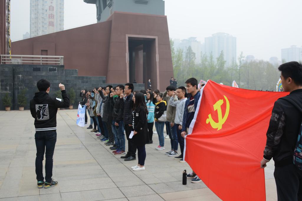 理学院团工委书记魏小平以“缅怀先烈,铭记历史;不忘初心,继续前行”为主题发表致辞,回顾了革命烈士为了民族解放、人民幸福抛头颅洒热血的丰功伟绩和勇于牺牲的大无畏精神,鼓励全体同志要不忘初心,继续前行。学生代表程飞同志在发言中追思先烈,忆苦思甜,重申作为青年党员的责任,要摒弃骄奢淫逸,继承先辈遗志,开拓创新,继往开来。仪式在全体成员铿锵有力的宣誓中结束。