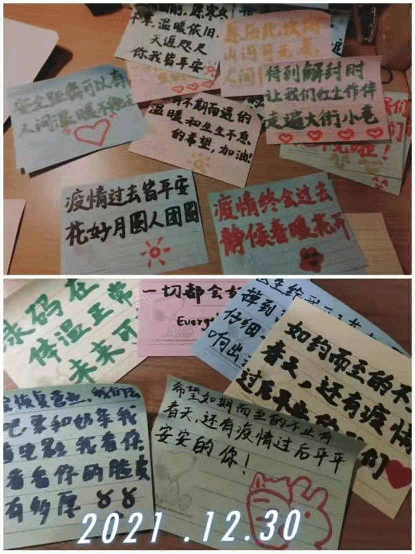 师生众志成城,同心抗疫,学院师生坚定执行学校决策,有序开展核酸检测,稳步进行科研学习安排,踊跃投身抗疫一线,积极参与志愿服务,全心全意互帮互助,为抗疫的必然胜利做出重要贡献。