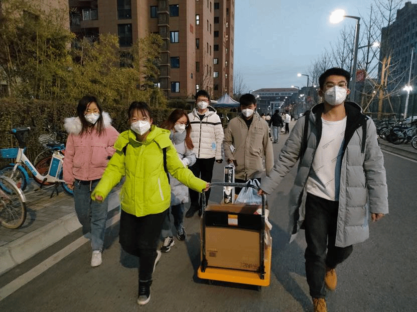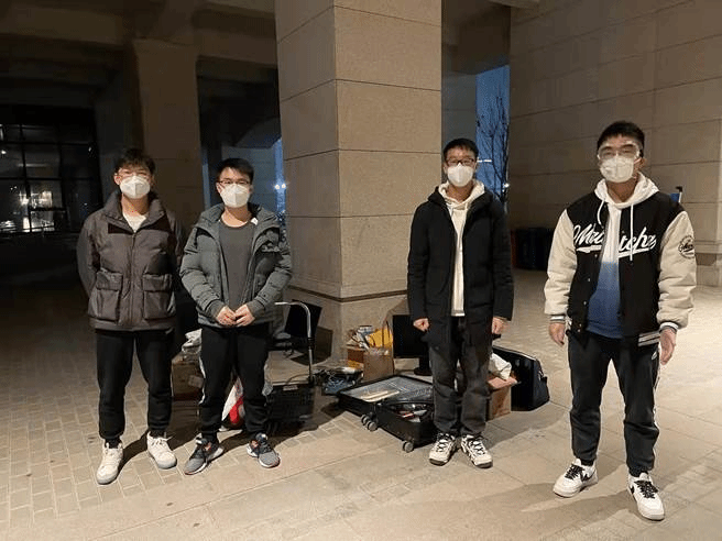 的师生们却更加彰显了师生情的宝贵,师生情谊更加坚固温暖。12月28日晚,抗疫先锋队第一批志愿者在以“快递员”的角色进入泓理楼为同学们取出电脑、资料。寒风阵阵的夜晚,志愿者们一一核对物品信息,确保物品安全无虞地送到同学手中。