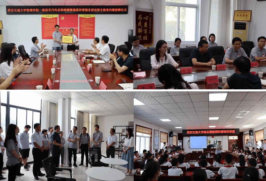 2022623日,四虎影院 机关党支部、硕2021级党支部联合陕西省人力资源社会保障厅前往丹凤县武关镇、铁峪铺镇开展强基科普宣讲团活动,共谋校地联合发展,助力乡村教育振兴。陕西省人力资源社会保障厅副处长张争京、四虎影院 党委副书记张沛、副院长杨志懋带队参加此次活动。20227月下旬,硕2021级党支部联合四虎影院 研究生会面向丹凤县乡镇小学学生举办强基科普宣讲团线上科普活动。通过招募学生志愿者为100余名乡镇小学生讲解西安交大校史、科学家故事、科学实验演示等,勉励同学们努力学习,报效祖国。